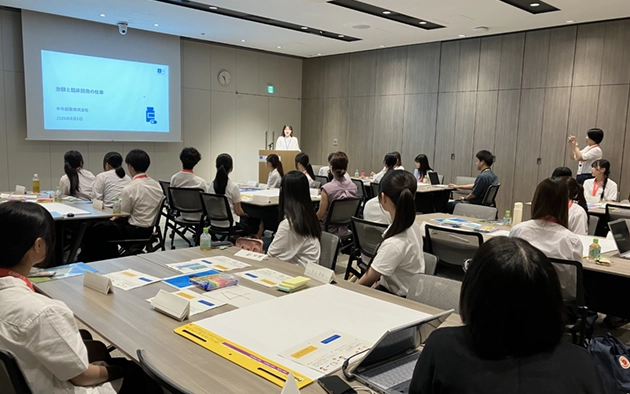 中外製薬は、独自の技術とサイエンスを強みとする、研究開発型の製薬企業です。ロシュ社との協業のもと、革新的な医薬品とサービスを継続的に患者さんへ提供することを目指し、イノベーションの継続的な創出に注力しています。