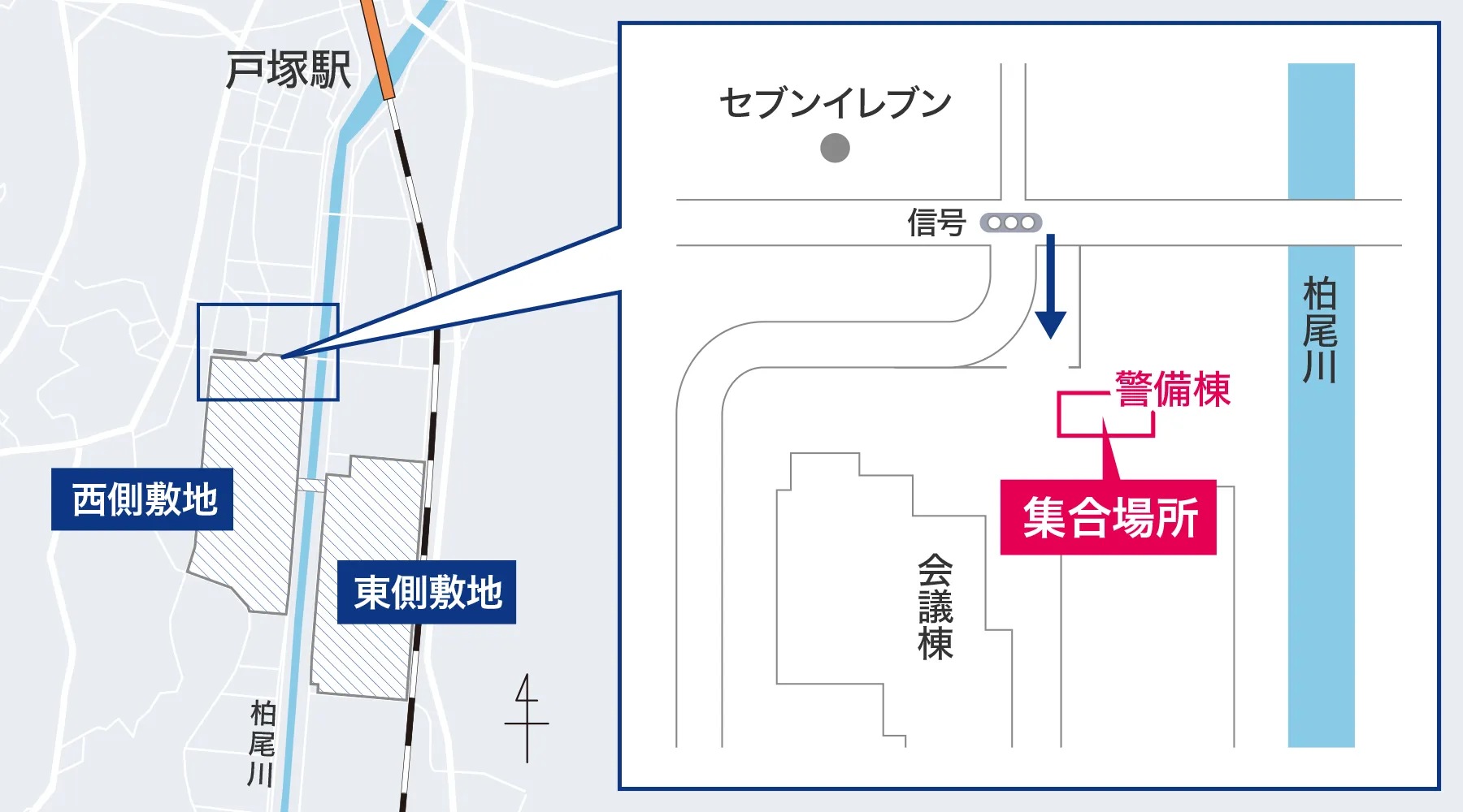 中外ライフサイエンスパーク横浜の入り口正面にあります警備棟で入場手続きを行ってください。
