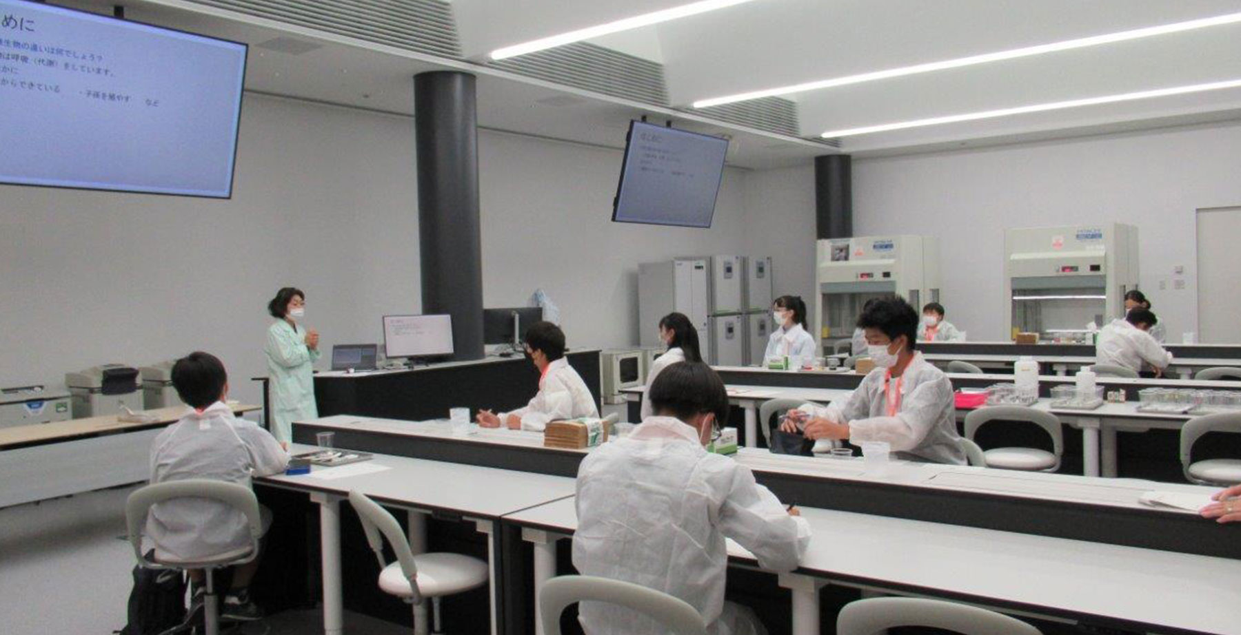 2023年7月25日、南流山児童センターの副館長、山川幸子さんをお招きして、中学生を対象とした実験教室を開催しました。今回の実験教室では、生物の基本単位である細胞の中で行われている「代謝」という生命現象を理解するため、酵母と呼ばれる微生物の代謝の一つである「呼吸」をバイオリアクターという手法を用いて観察しました。