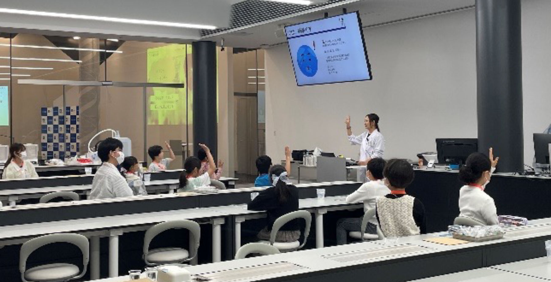 2024年4月4日、株式会社共立理化学研究所と共同で、同社の加藤クインさんが講師を務める実験教室を開催しました。対象は小学校4年生~6年生で、身近な川の水質を測る実験を通して、豊かな水資源を守るために今知ること、しらべることを学び、どうしたら守れるかを話し合いました。