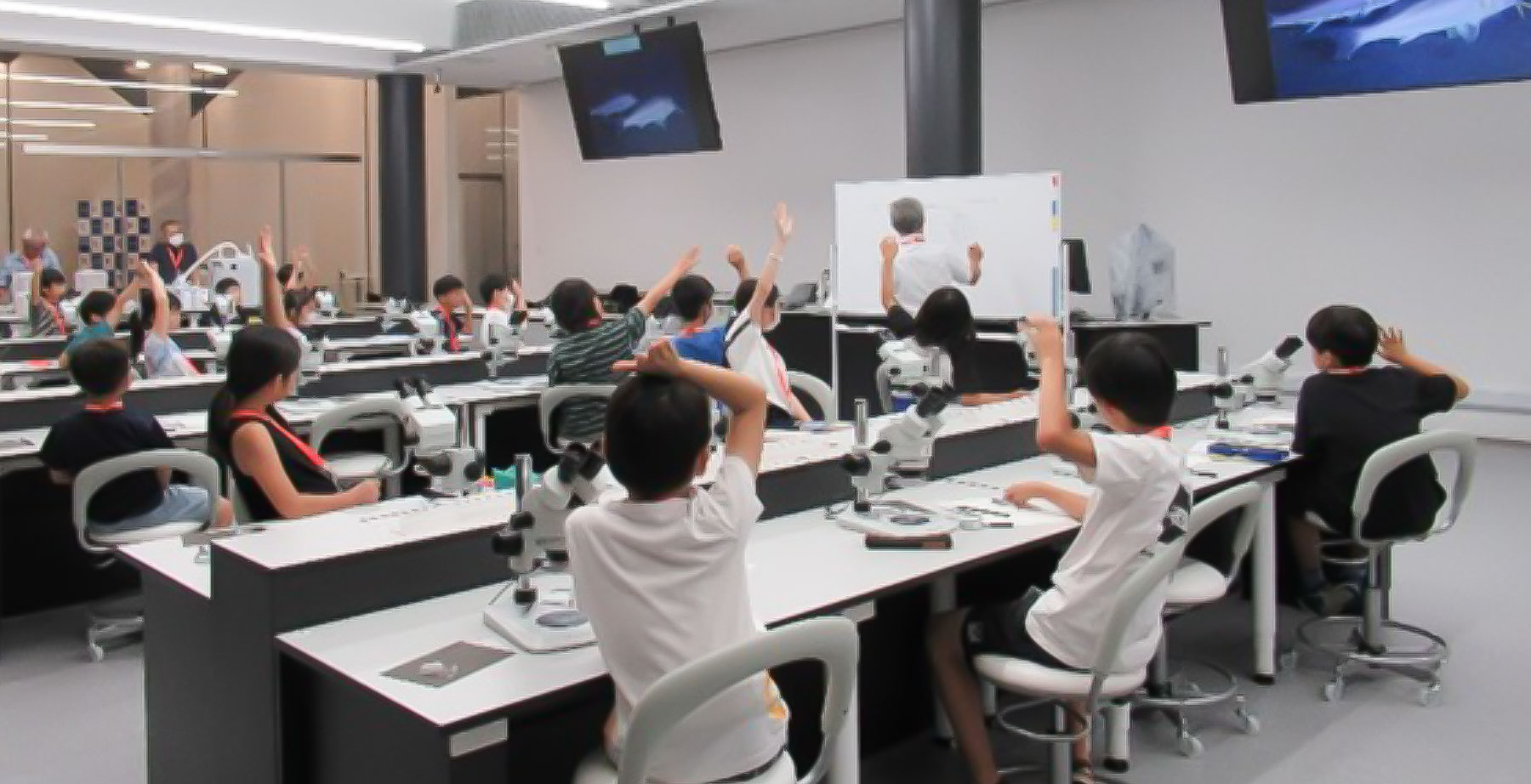 2024年7月21日、日本魚類学会 金沢八景―東京湾アマモ場再生会議 工藤孝浩先生が講師を務める実験教室を開催しました。対象は小学校4年生~6年生で、いろいろな種類の魚のウロコを顕微鏡で観察し、模様や形から分かることを学びました。