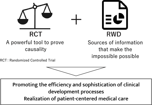 While clinical trials are conducted in the form of Randomized Controlled Trials (RCTs), Chugai aims to utilize RWD to increase the efficiency and sophistication of trial planning to assist in proving efficacy and safety in cases where it is difficult to conduct RCTs, such as rare diseases and diseases with a small number of patients.
