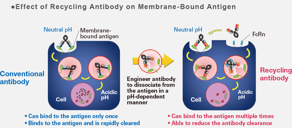 Chugai's proprietary recycling antibody technology, applied in SA237 is designed to dissociate from the antigen under acidic conditions, and can bind to the antigen multiple times. As a result, it shows significantly longer plasma persistence and effective duration. SA237 is receiving increasing attention worldwide as a potential treatment for NMO, which does not yet have any approved remedies.