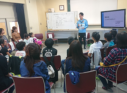 After the event, Mr. Shitara gave a lecture to all the participants and their parents. He spoke about his life prior to becoming a working adult, his deaf soccer and deaf futsal activities, and talked about Chugai. An informal get-together followed.