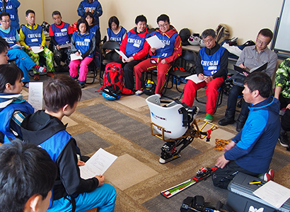 On March 2 and 3, Chugai was a special sponsor of the Chugai “Chair Ski Class to be Enjoyed by Parents and Children,” organized by the Japan Chair Ski Association. This event, now in its fourth year, offers children with disabilities the opportunity to experience and enjoy chair skiing with their families. Employee volunteers arrived the day before the event, received instruction in serving as chair guides from the Japan Chair Ski Association and Neige, a ski school for those with disabilities, and then prepared to welcome the participants.