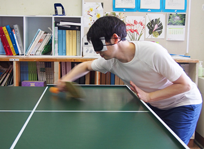 This year, an expert instructor gave a lecture on communicating with the visually impaired. In addition to the class, participants got to experience the sports from the point of view of both player and supporter, trying on goggles that simulate limited vision and walking through the school in teams with their eyes closed.