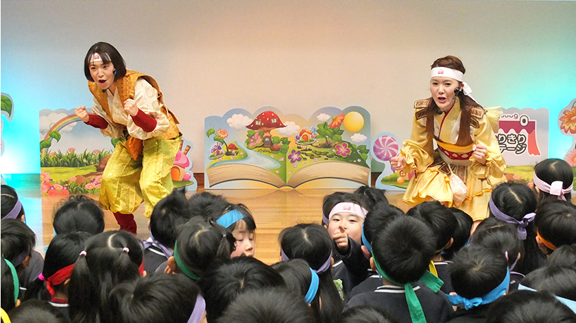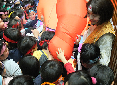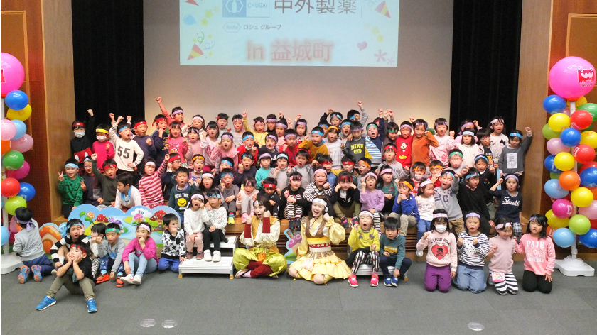 As part of our support for areas stricken by the Kumamoto earthquakes, Chugai was a special supporter of a children’s performance, “Narikiri Stage”, held by the Huuug Association on January 30. Based on the tale of “Momotaro,” the program welcomed children to become the characters themselves on stage, telling the story through song and dance as a way of developing their creativity, expressiveness and cognitive abilities.