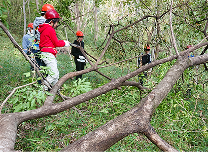 Since 2010, Chugai has participated in Tokyo Greenship Action*, sponsored by the Tokyo Metropolitan Government. On November 3, Chugai employees and family members totaling 31 people joined NPO staff and others in cutting grass and thinning trees at the Higashi Toyoda conservation area in Hino City (inside Kurokawa Seiryu Park of Hino City, Tokyo).