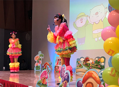 Based on “The Three Little Pigs,” the program welcomed children to become the characters themselves on stage, telling the story through song and dance as a way of developing their creativity, expressiveness and cognitive abilities. The program featured two performances by former members of the Takarazuka Revue’s Moon Troupe, and brought together the smiling faces of 383 children and adults from the town of Yamamoto in Miyagi Prefecture. Together they learned about protecting valuable lives through disaster readiness. The event ended with a choral rendition of The Song of Life by Anji Hino and the other performers, a song of survival and a reminder that this was a day for learning about the value of life.