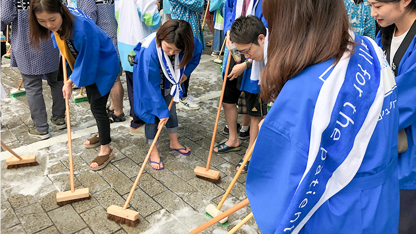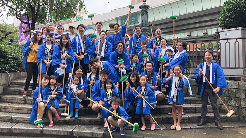 Sunday, July 28, the employees in Tokyo area joined the event “We wash Nihonbashi Bridge.”
