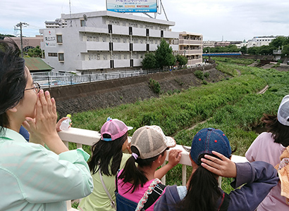 The theme of this lab class is “Let’s look at the microscope, what is in the River water?” They observed the area around the Kashio River near the venue, looked the water extracted from the river through a microscope.