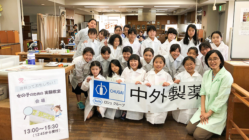On Friday, July 26, Chugai sponsored a lab class for Girls which has been held since 2011, held by the Yokohama Association for Promotion of Gender Equality. The class welcomed girls in the fourth through sixth grades, who were selected from the public.