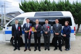This year, recipients of the vehicles included Simogo Town Council of Social Welfare (Fukushima Prefecture), Matsukawa Village Council of Social Welfare (Nagano Prefecture), Social Welfare Corporation Tenchikai (Shiga Prefecture), Shimonoseki City Council of Social Welfare (Yamaguchi Prefecture) and Social Welfare Corporation Shiroi canvas fukushi kai (Kumamoto Prefecture). A presentation ceremony was held in each location, and the donations were warmly received by recipient facility staff and users.