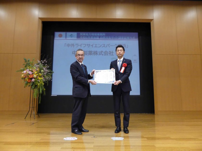 Chugai Life Science Park Yokohama certified as a Natural Symbiosis Site by the Ministry of the Environment