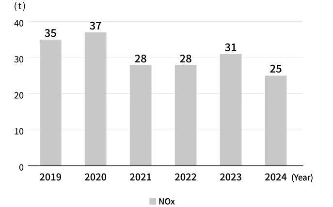 In 2024, NOx emissions totaled 25 tons, a reduction of 6 tons compared to 2023. We are working to prevent air pollution by measures such as upgrading our cogeneration system to low NOx models.