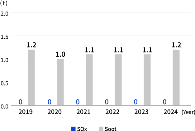 Based on the Air Pollution Control Act and various prefectural ordinances, the Chugai Group measures emissions of nitrogen oxides (NOx), sulfur oxides (SOx) and soot, verifying compliance with emissions standards before releasing them, and is working to reduce them.