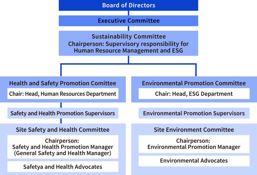 Under the above EHS management system, the Health, Safety and Environment Committee promotes EHS activities through cooperation between labor and management, conducts education and training, ensuring occupational health and safety, and engaging in global environmental conservation efforts.