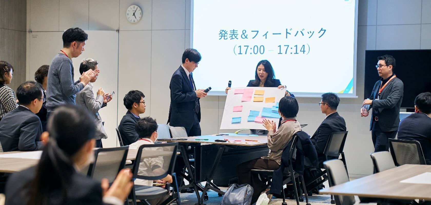 当日は講演者と参加者でミニワークショップも開催。グループワークでアイデアや課題解決の方法を話し合うと共に中外製薬の最新の研究施設「中外ライフサイエンスパーク横浜」の見学も行いました。