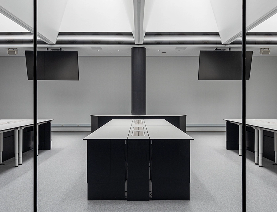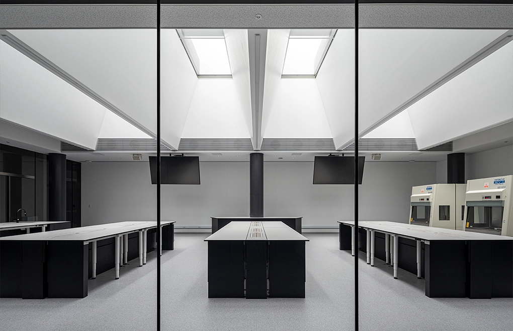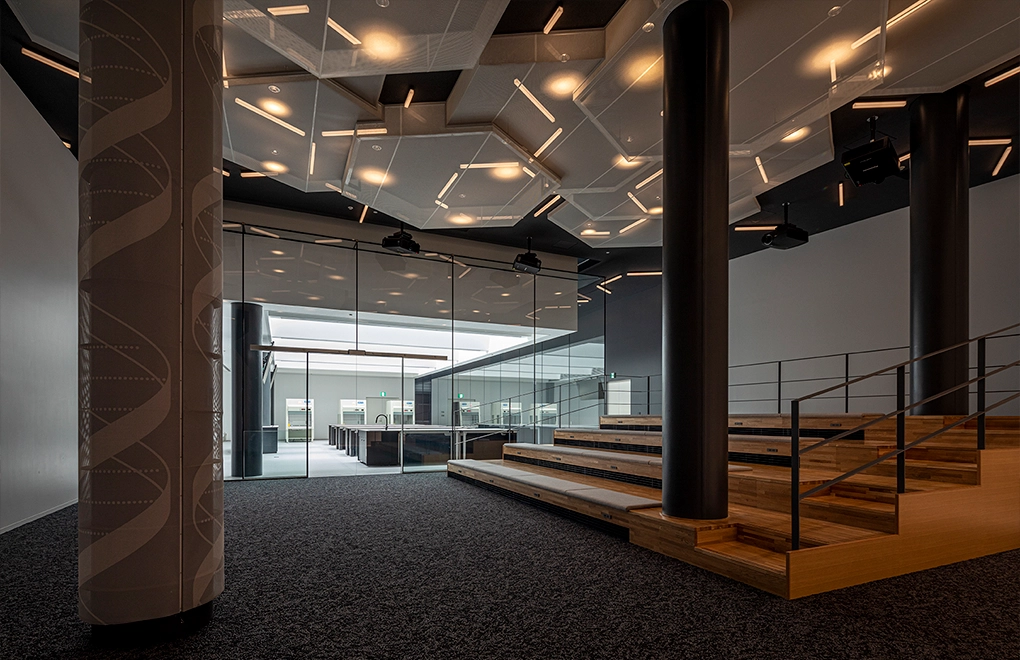 バイオラボは自然光が降り注ぐ明るく開放的な未来型の「実験室」と、多様な学び体験ができるよう、間仕切りのない大空間に平場と階段状のベンチを設けた「講義スペース」で構成されています。