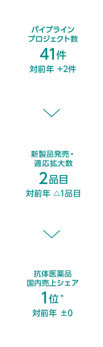 こうした結果、患者さんに適時・適切に革新的な製品を届けることが可能となり、がんや抗体医薬品においてはトップシェアを堅持しています。