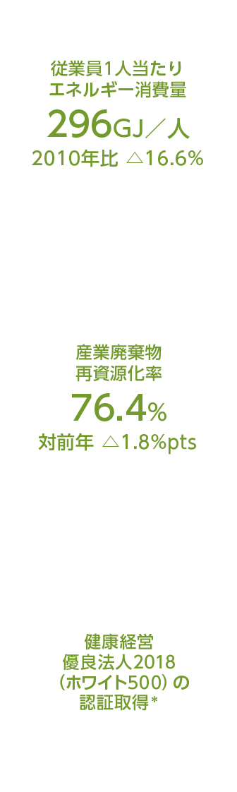 * 健康経営優良法人2018(ホワイト500)は、経済産業省と日本健康会議が連携し、特に優良な健康経営を実践している大規模法人に与える認証。詳細は経済産業省のウェブサイトをご参照ください