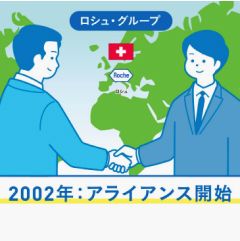 中外製薬は、2002年、世界有数の製薬企業であるスイスのロシュ社と戦略的アライアンスをスタートさせ、独自のビジネスモデルのもと成長を遂げてきました。