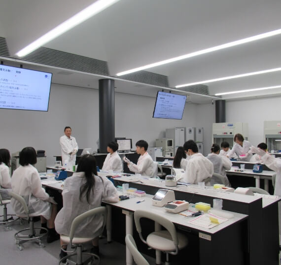 バイオテクノロジーに強みをもつ研究開発型製薬企業である当社は、科学教育を通じた次世代の育成に取り組んできました。「中外ライフサイエンスパーク横浜」の実験体験施設「バイオラボ」では、地域の小中学生に学校の理科の授業を補完する身近な生物の観察や最先端の技術に触れてもらう実験教室と、当社の研究員が企画し、講義や実技指導も務める、高校生向けのバイオ人財育成プログラムを開催しています。
