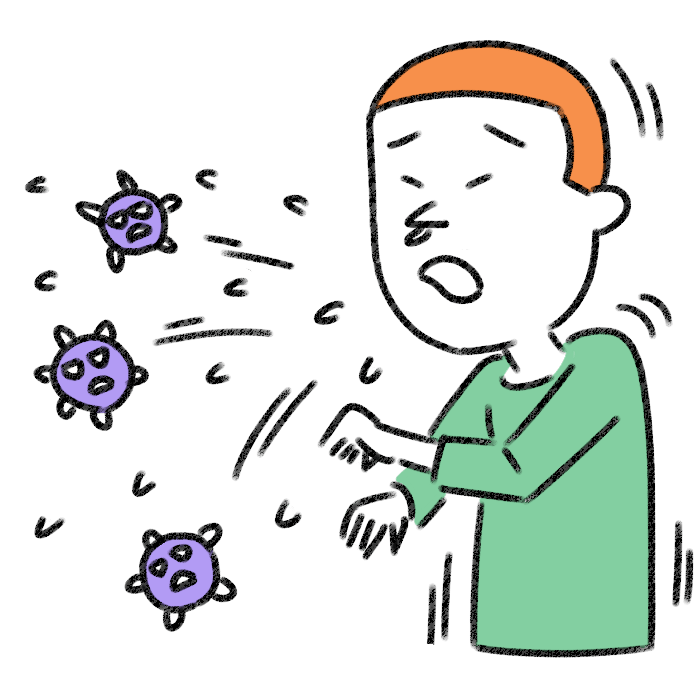 まず、鼻や口から入ってきたウイルスをくしゃみやせき、鼻水で追い出そうとする。