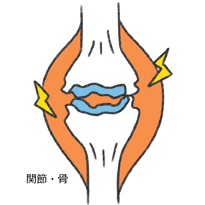 炎症が進むと骨や軟骨の細胞がこわれる。関節の細胞がこわれると、関節の形が変わってくる。一度変わってしまった関節の形はもとにもどらない。