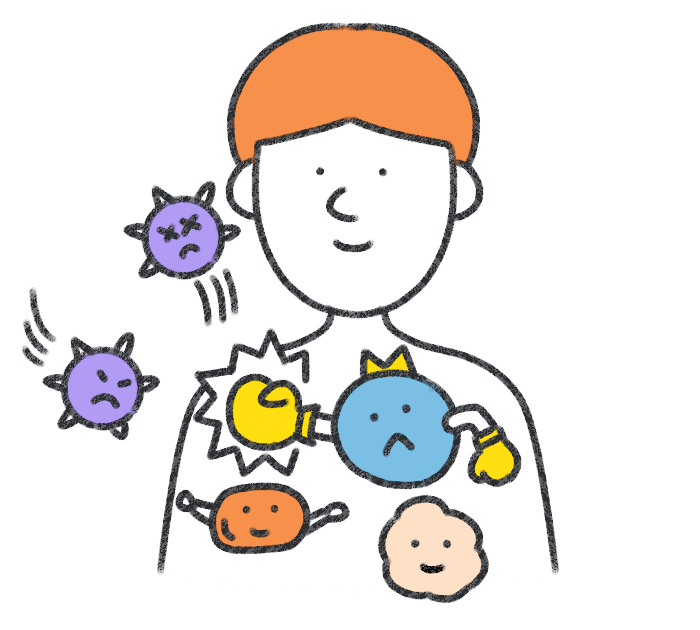 わたしたちのからだには、外から入ってきたウイルスや細菌(さいきん)などの病原体や異物(いぶつ)を攻撃(こうげき)したり、からだの外に追い出したりするしくみがある。これを免疫という。また皮ふには、水分を保ち、病原体を体内に入れないバリアの働きがある。