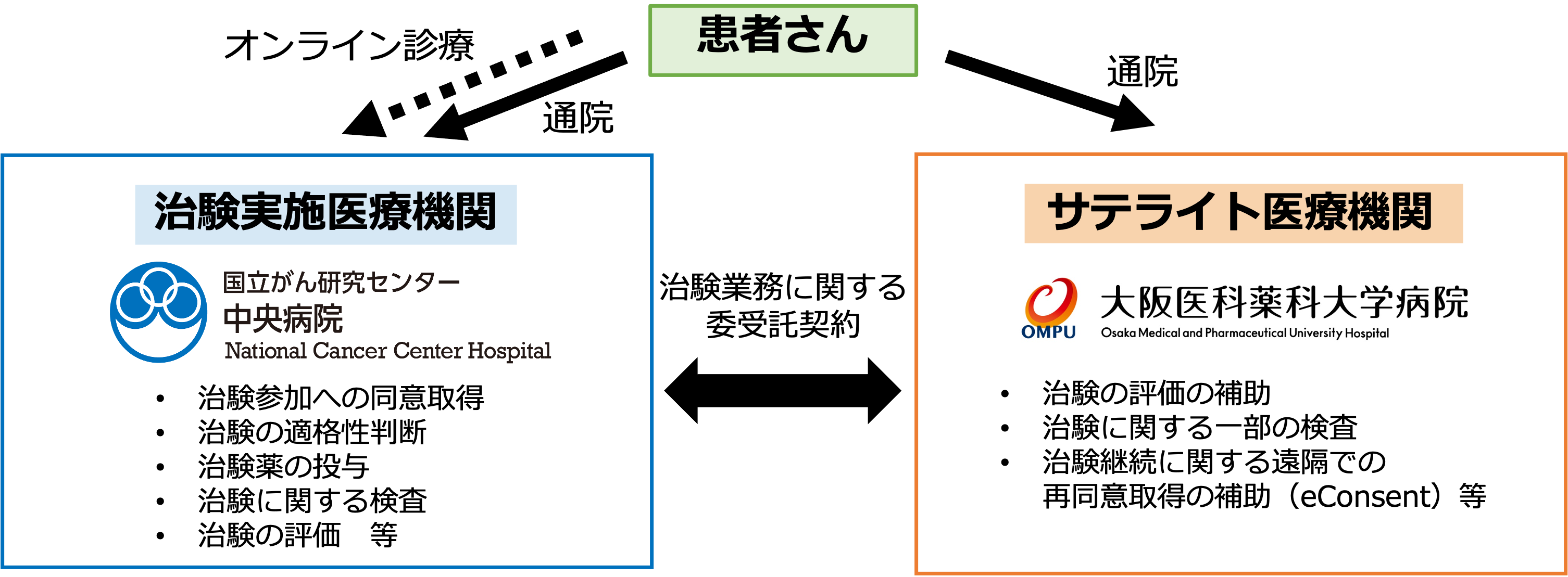 - ※※サテライト医療機関は、臨床試験の実施医療機関以外で臨床試験に関する検査や評価の一部を行う場合に利用する医療機関です