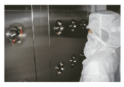 工場内に汚れを持ち込まないようにふたつの部屋を使って着替えます。