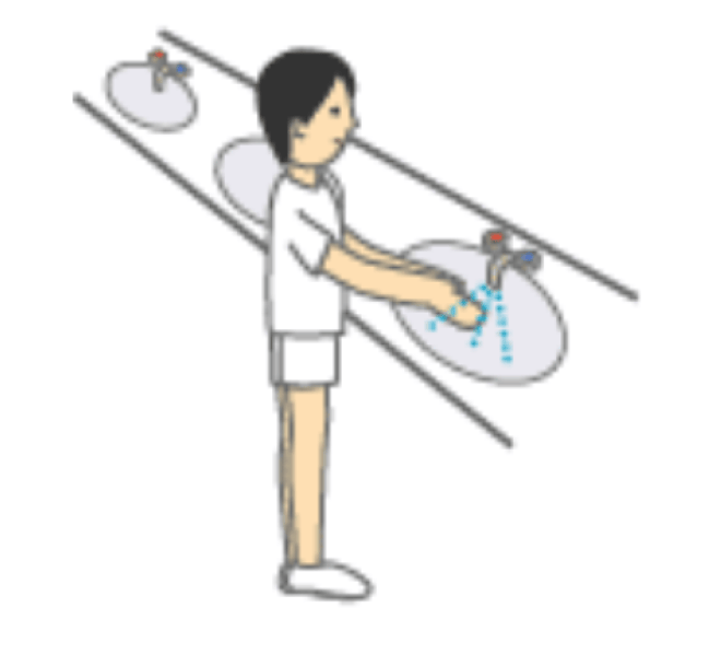 - 靴・上着を脱ぎ、手を洗い消毒する