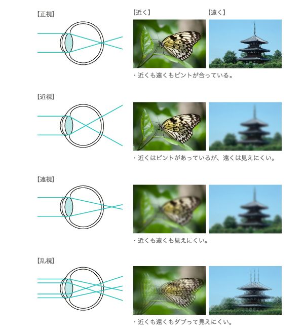 色々な見え方があるため、メガネやコンタクトレンズで調整します。