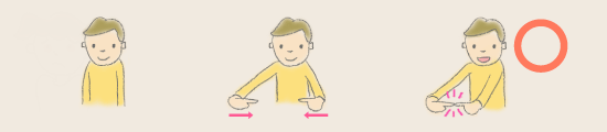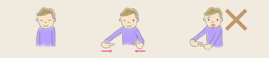 【1】まず両目を開けたまま、左腕と右腕を前にピンと伸ばし、両手の人差し指どうしを合わせてみましょう。両目を開けているときは、指の先端(せんたん)を簡単に合わせることができますね。