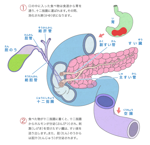 すい臓と十二指腸は、とくに深い関わりがあります。