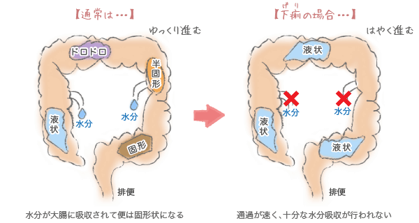 便にふくまれる水分が多くなり、液状や泥状(どろじょう)になった状態です。
