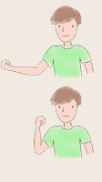筋肉と骨の関係について、右腕(みぎうで)を曲げる動きでみてみましょう。