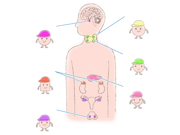 ホルモンはからだの中の内分泌腺(ないぶんぴつせん)というところで作られています。