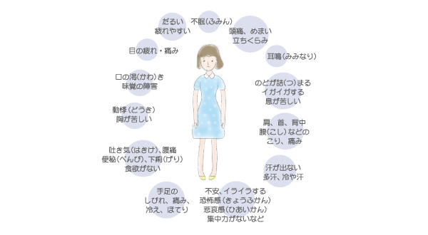 自律神経調整剤(じりつしんけい・ちょうせいざい)や抗不安剤(こうふあんざい)、ホルモン剤などの薬のほか、心理療法(しんりりょうほう)など症状に合わせた治療を行います。