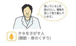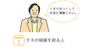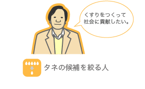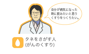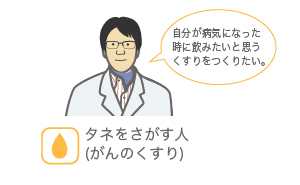 ※くすりのタネを探す人と育てる人は研究者によっては重複する場合もあります。