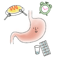 食後とは、食事が終わって20〜30分後までのことです。食事の後は胃の中に食べたものがあるので、胃への刺激が少なくなります。食後の薬は飲み薬の中で最も多いタイプです。主に食べ物と一緒のほうが吸収が良くなる薬や、空腹時に飲むと胃を荒らす薬などは食後に飲みます。