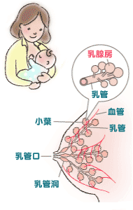 母乳は、乳房の中の乳腺房と呼ばれるところで、血液を原料にして造られます。