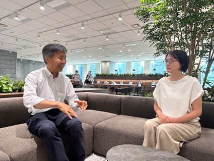 トップイノベーター像の実現に向け、社員のニーズに耳を傾けながら、さらに研修を強化していきたいと語る2人。創薬にとどまらないビジネス領域への進出・発展に必要な幅広い知識・スキルを身につけられる研修を充実させていきたいと話す。