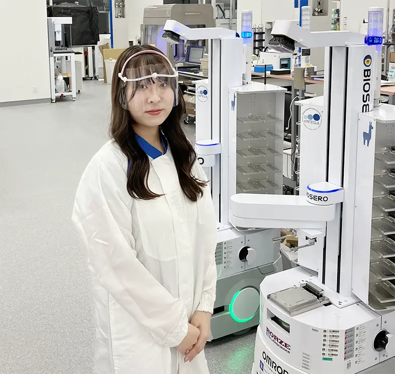 2022年株式会社中外医科学研究所入社。入社2年目まで細胞イメージングによる薬効評価やゲノム編集技術を用いた細胞株構築に従事。現在はラボオートメーションを活用した抗体の大量評価・分析業務や細胞エンジニアリング関連業務、人とロボットが共同作業する実験環境の構築などを担う。