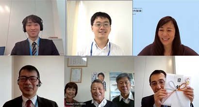 新型コロナの感染症対策として、初めてのリモートでの寄贈式では、画面から笑顔がつながりました。