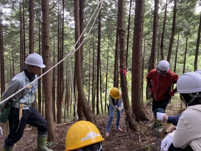 2)間伐作業:森が茂りすぎるのを防ぐために、一部の木を伐採し適正な密度の健全な森林に導く作業です。間伐することで、それぞれの樹木へ日光を届けることができ、さらに低木の育成も促すことができるため、健全な森林に導くことができます。