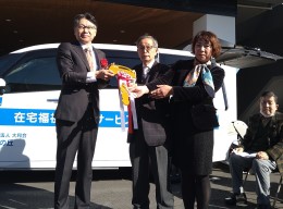 超高齢社会を迎えたわが国では、介護を必要とするご高齢の方やお身体の不自由な方は年々増加しています。このような方々が住み慣れた地域で安心して自立した生活を送るために、現在、デイサービスやデイケアをはじめとする在宅福祉サービスが様々な施設で行われています。当社が寄贈している「在宅福祉移送サービスカー」は、こうした施設とご自宅を結ぶ移動手段として活用されています。