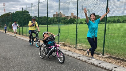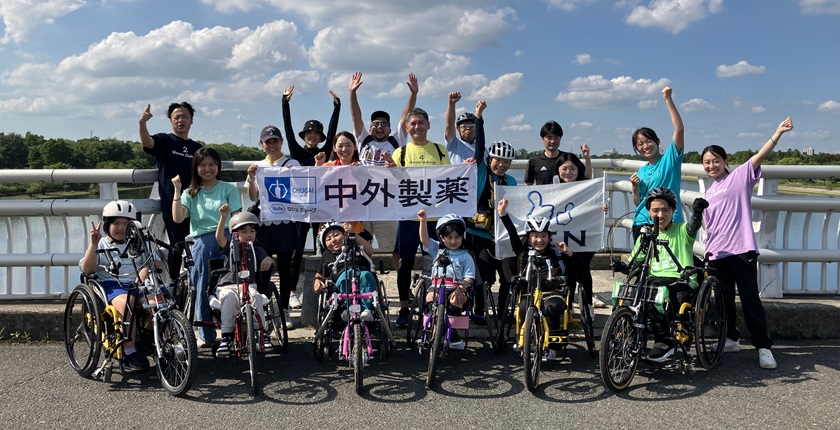 中外製薬は一般社団法人ZENが実施する「親子で楽しむハンドバイク教室」に2024年度も協賛しました。このイベントは、障がいのある子どもたちとそのご家族にとって難しいとされる野外活動の機会を提供することにより、子どもたちの自立を促すことを目的としています。当社は2021年からこの活動を支援しており、今年は埼玉県の彩湖・道満グリーンパークで3回実施され、合計47名のご家族が参加しました。