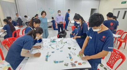 本スタッフ研修も、今年で5年目を迎えることができました。今回はカンボジア人スタッフの参加者層をさらに広げ、職種別のグループでワークショップが実施されました。参加者全員が非常に積極的に取り組み、限られた時間内で楽しそうにプロダクトを仕上げていました。